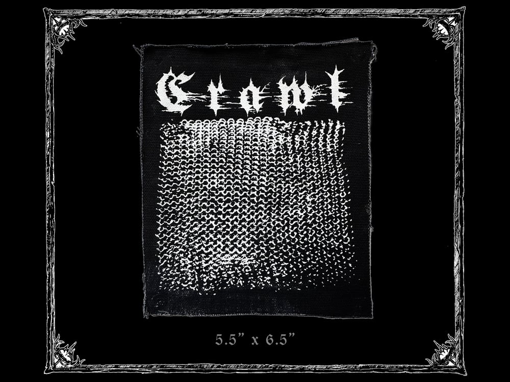 5.5" x 6.5" Black canvas patch printed with white plastisol ink